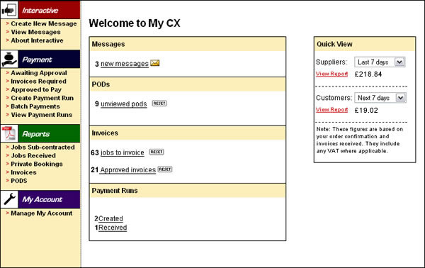 Courier Exchange bietet dem Anwender ein voll ausgerüstetes Transaktions - System, dass sich ‛Tramp‛ nennt.